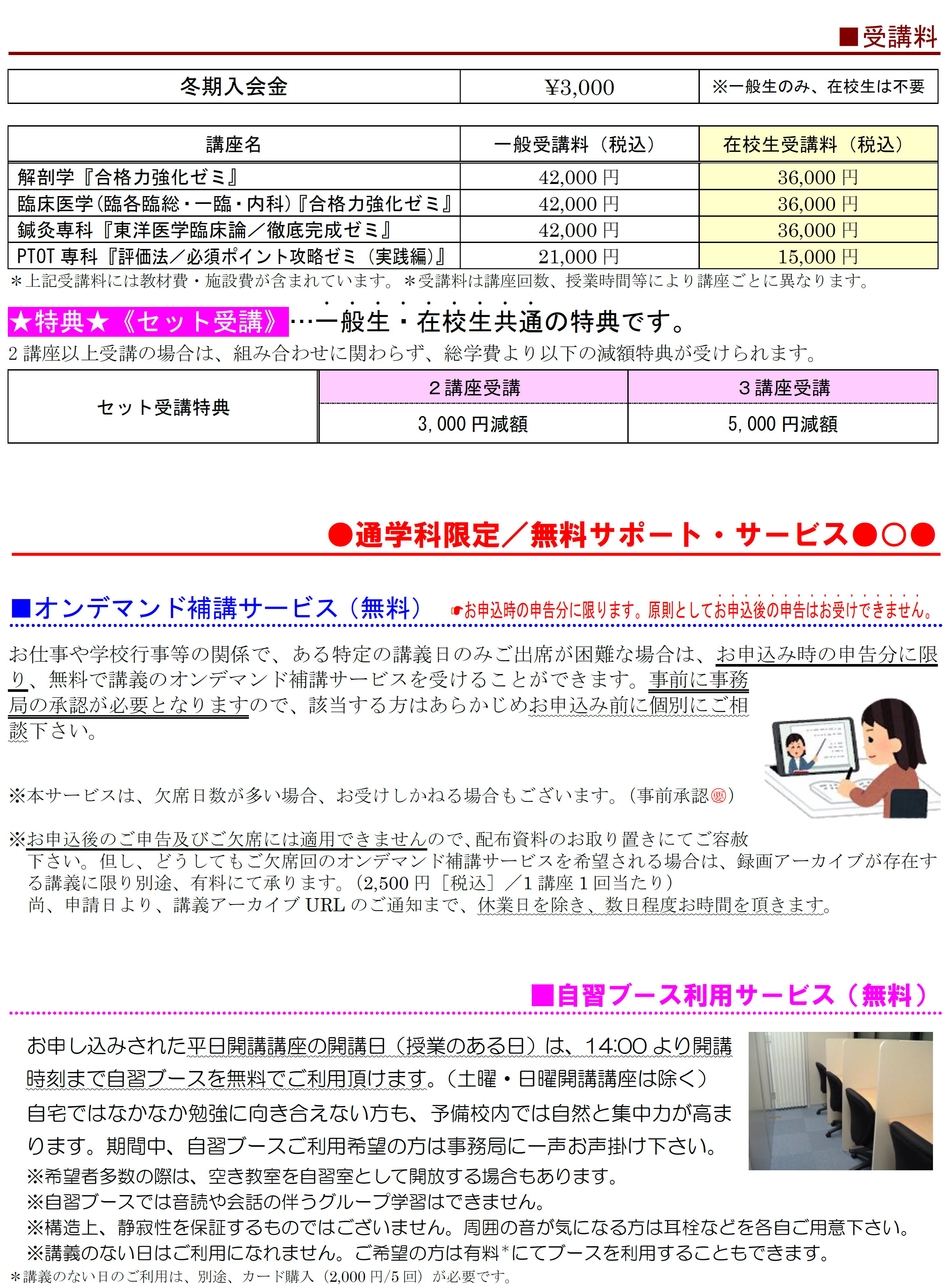 『冬期特別講習会2025』は、医進学園クループの明治鍼灸柔整予備校と東京理学看護予備校の合同企画です。