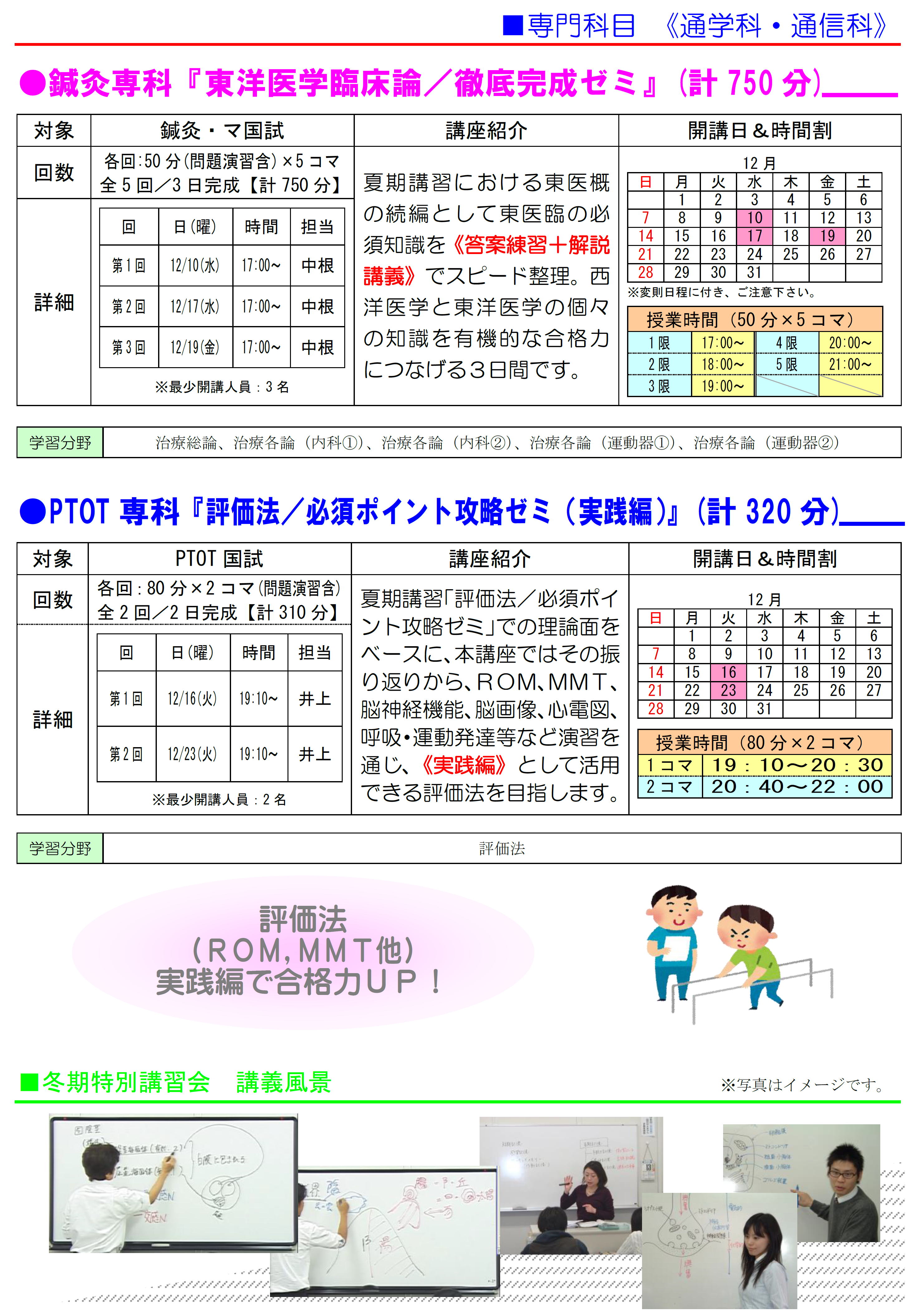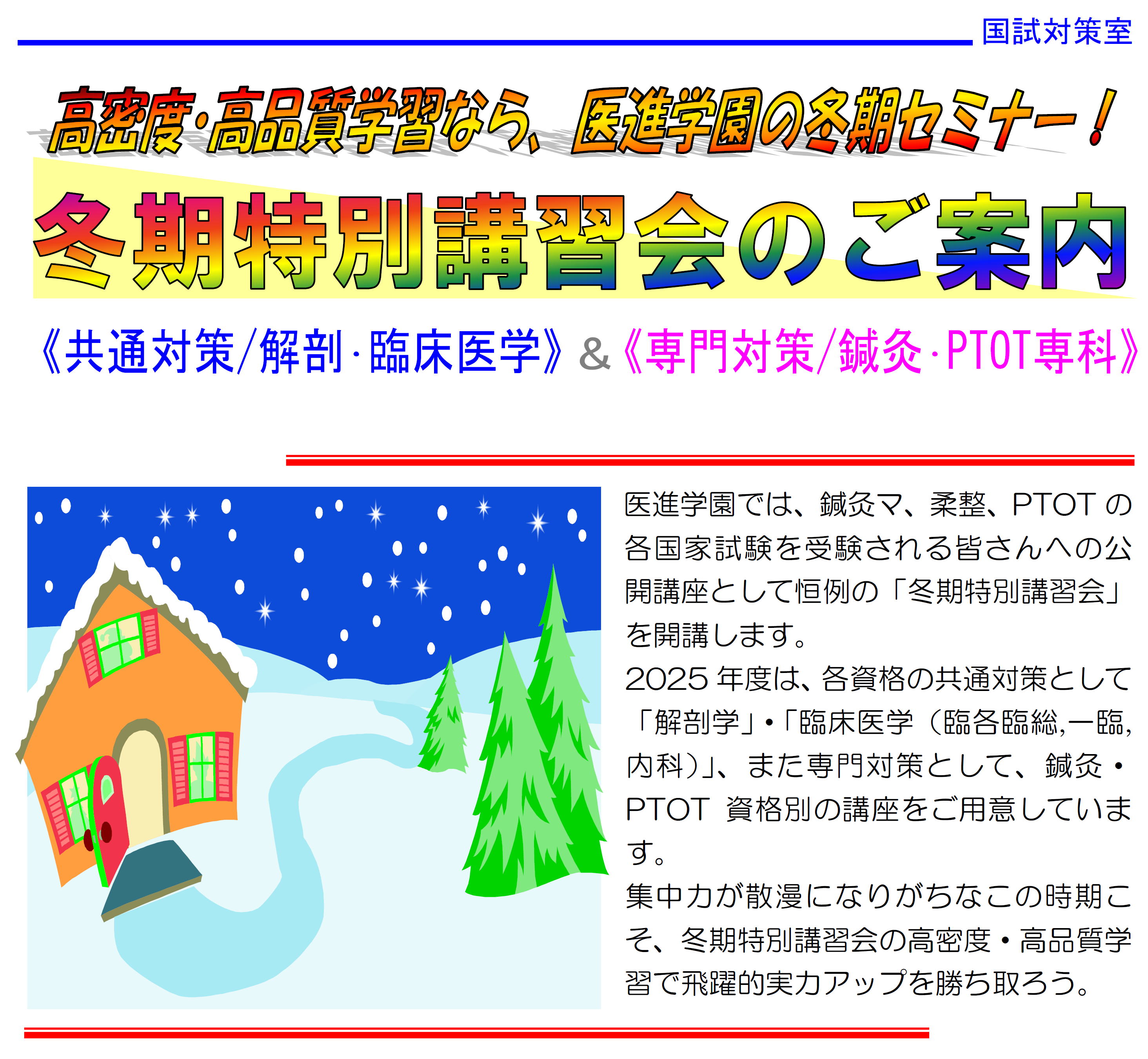 『冬期特別講習会2025』は、医進学園クループの明治鍼灸柔整予備校と東京理学看護予備校の合同企画です。
